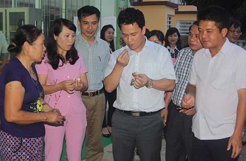 Khi đến điểm bán hải sản tại đường Võ Liêm Sơn, thấy chủ cửa hàng đang nướng cá bán, ông Khánh đã thưởng thức. "Bà con yên tâm, hải sản đã qua kiểm tra chất lượng của các cơ quan chức năng", ông Khánh nói với các tiểu thương.