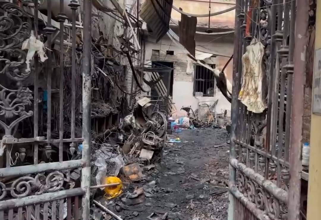 Hiện trường vụ cháy nhà khiến 14 người chết là khu nhà ở kết hợp kinh doanh, sửa chữa xe máy, xe đạp điện.