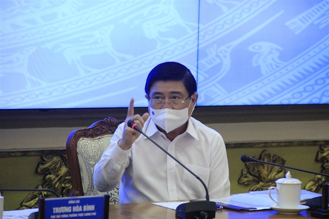Chủ tịch UBND TP.HCM Nguyễn Thành Phong phát biểu tại cuộc họp. (Ảnh: TTBC)