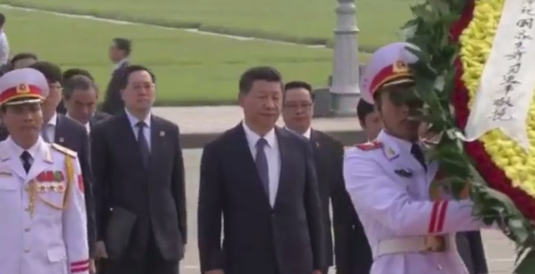 Sáng 13/11, Chủ tịch Trung Quốc Tập Cận Bình đã đến đặt vòng hoa và viếng lăng Chủ tịch Hồ Chí Minh. Sau đó, ông cùng Tổng Bí thư Nguyễn Phú Trọng di dạo, thăm nơi Bác Hồ mất.