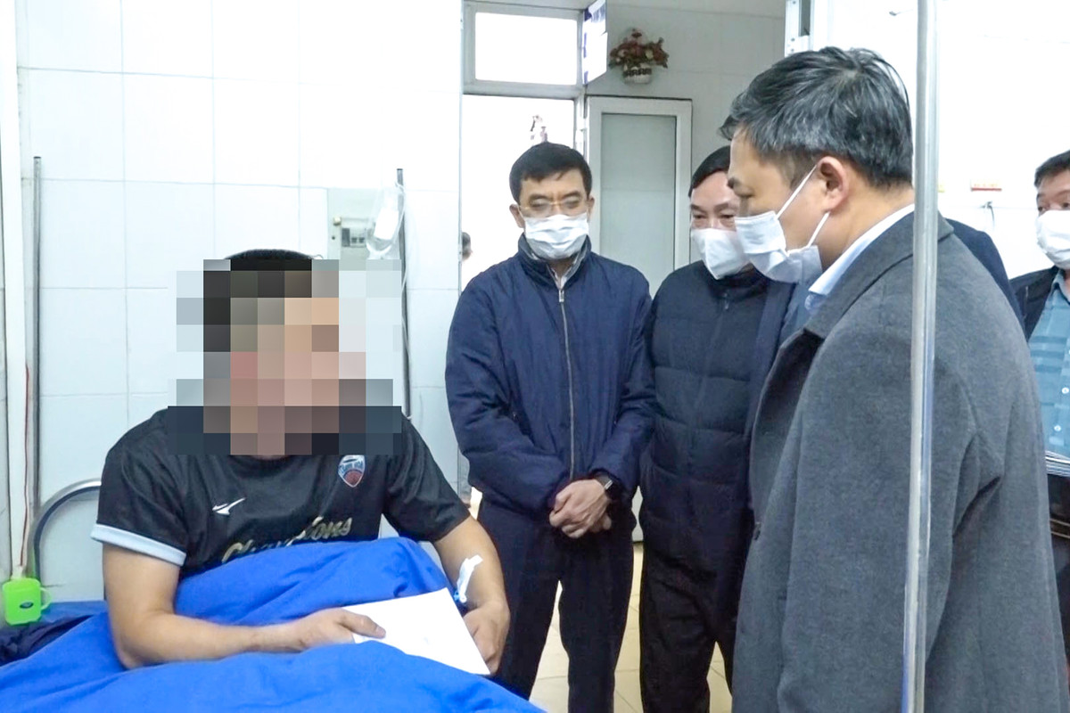 Ông Nguyễn Đình Việt, Chủ tịch UBND tỉnh Sơn La thăm hỏi, động viên các nạn nhân vụ tai nạn ở huyện Yên Châu đêm 21/2. (Ảnh: C.T.)