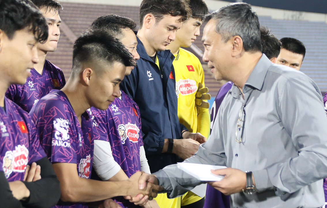 Ông Trần Quốc Tuấn biểu dương tinh thần tập luyện và sự nỗ lực của toàn đội trong giai đoạn chuẩn bị quan trọng cho ASEAN Cup 2024.
