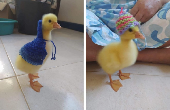 Bài đăng về chú vịt con đáng yêu này thu hút hơn 19 nghìn lượt bày tỏ cảm xúc, hơn 1.400 bình luận sau khi xuất hiện trên Facebook, và được nhiều người chia sẻ. Chủ tài khoản viết: "Chị tôi nhặt được chú vịt này ở ngoài đường. Sau đó chị tôi quyết định đem về nuôi và móc áo, mũ len cho nó...".