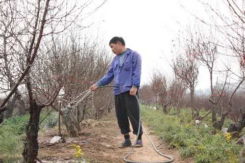 Ông Hùng, chủ vườn đào bãi Tân Bồi, Nhật Tân (Hà Nội) cho biết làm nghề trồng đào cũng gần giống như đánh bạc, thắng hay thua đều phụ thuộc vào thời tiết, nóng hay lạnh quá đều chết.