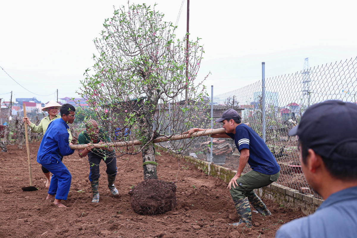 Các vườn đào cũng được cải tạo, thay đất trước khi trồng lại đào. Sau khi hạ cây xuống luống, chủ vườn duy trì tưới nước đều đặn, theo dõi hằng ngày để kịp thời phát hiện, xử lý những sự cố như thối rễ, khô thân hay cây suy yếu.