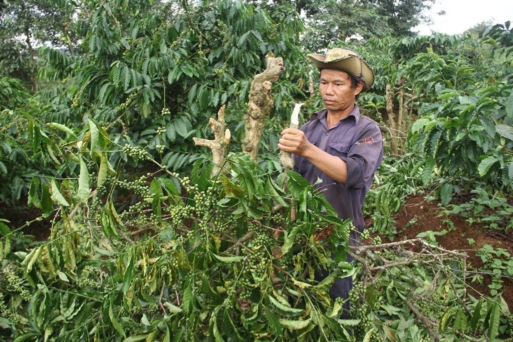 Vườn cà phê của ông Long đang chuẩn bị thu hoạch bị chặt phá.