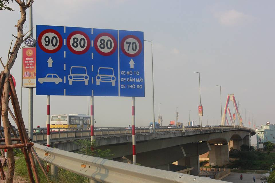 Biển báo hiệu tốc độ các phương tiện được phép di chuyển trên cầu Nhật Tân.