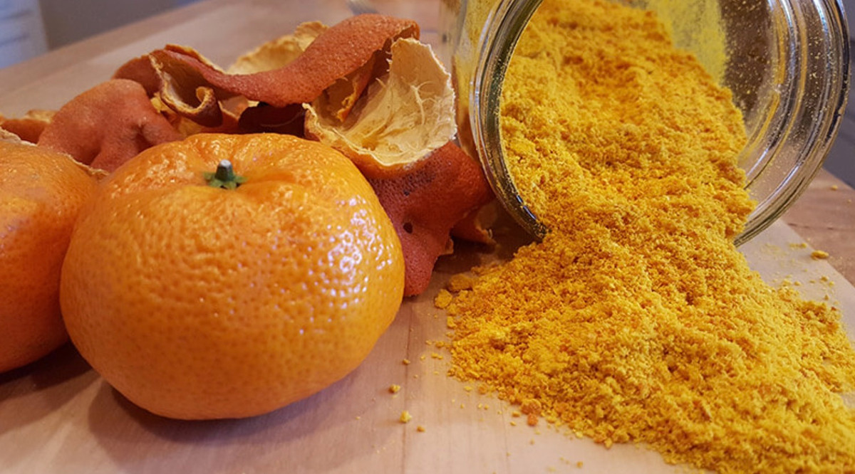 Đầu tiên, bạn rửa sạch vỏ cam, mang đi phơi khô 3 - 4 ngày hoặc cho vào lò vi sóng để sấy rồi cho vào máy xay nát thành bột.