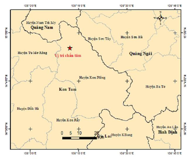 Theo đó, trận thứ nhất xảy ra hồi 5h55'46'' có độ lớn 2,8 độ Richter, tại tọa độ 14.922 độ vĩ Bắc, 108.205 độ kinh Đông, độ sâu chấn tiêu khoảng 8,1 km.