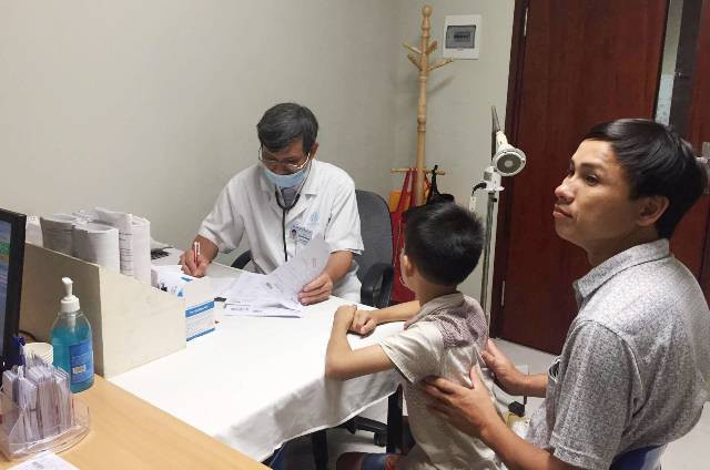 Bác sĩ đang khám bệnh cho bệnh nhi tại Bệnh viện Nhi Trung ương.