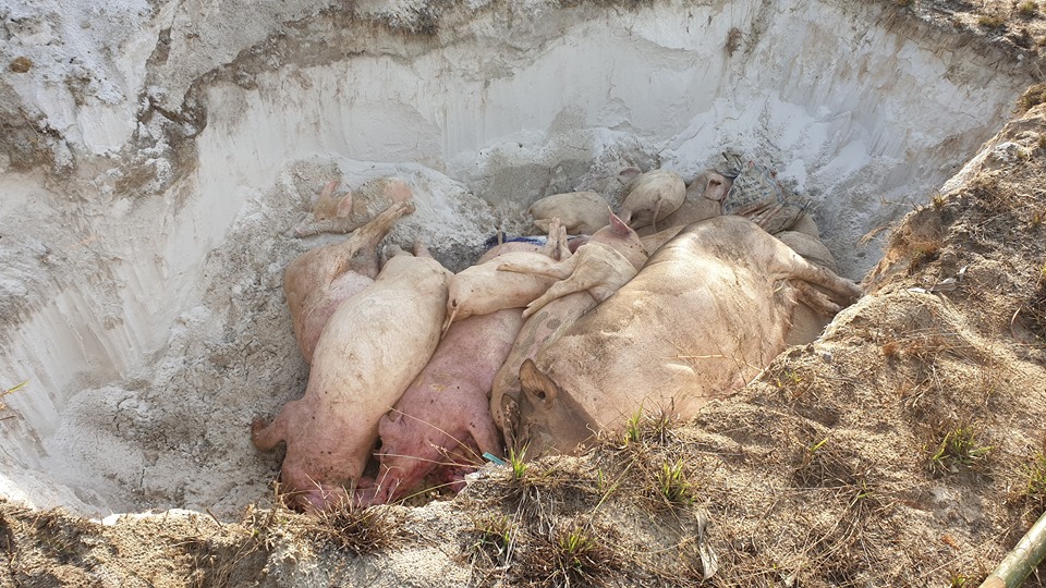 Một điểm tiêu hủy lợn bệnh ở xã Bình Triều.