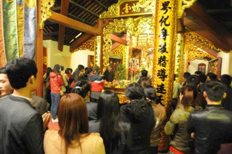 Đến 6h sáng, thời tiết xuất hiện mưa phùn nặng hạt nhưng không vì thế mà lượng người đổ về ngôi chùa linh thiêng này giảm xuống.