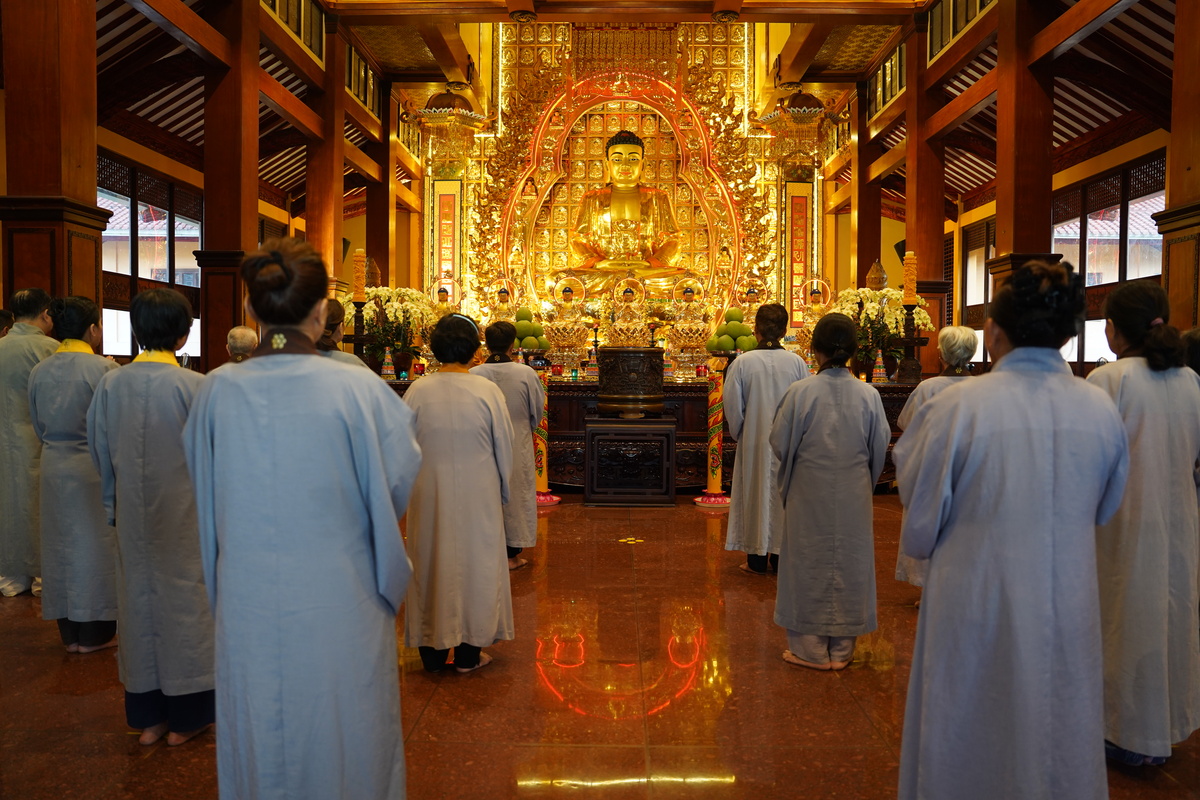 Trong không khí trang nghiêm và thành kính, mọi người tụng kinh, niệm Phật, dâng hương gửi gắm tâm nguyện cho đất nước bình yên, thịnh vượng.