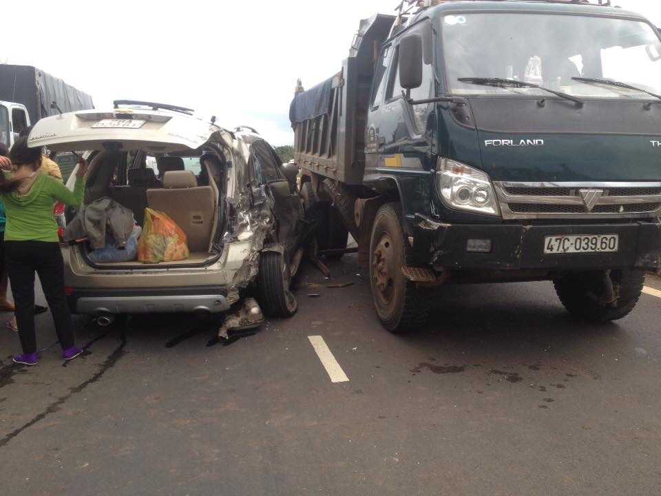 Khi xe đi đến địa điểm nói trên thì bất ngờ bị chiếc xe tải chở cát BKS 47C-039.60 do tài xế Trương Văn Thương (ngụ TP.Buôn Ma Thuột) điều khiển đi cùng chiều tông mạnh từ phía sau. Bị kéo lê khoảng 30m, xe ô tô 7 chỗ của anh Toản quay ngược đầu vào đuôi xe tải.