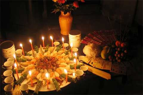 | Mâm cúng trong ngày này thường là các món chay và các đồ như hương hoa, vàng mã, đèn, nến, trầu cau, ngô, bỏng gạo...(Ảnh minh họa) |