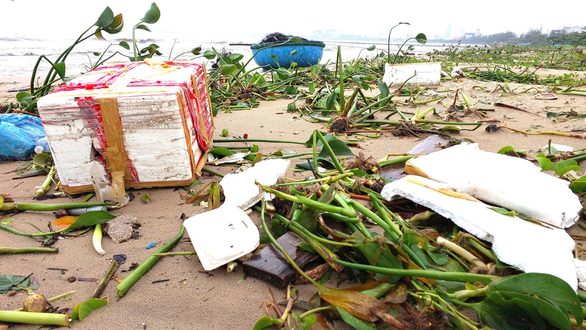 Biển Nguyễn Tất Thành, Đà Nẵng ngập rác sau mưa