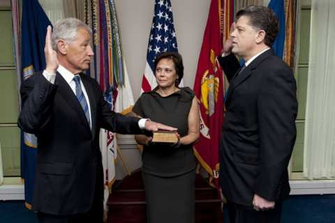 | Ông Chuck Hagel trong lễ tuyên thệ nhậm chức Bộ trưởng Quốc phòng Mỹ hồi tháng 2/2013 |
