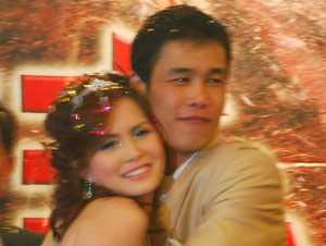 | Giây phút thiêng liêng: Hiệp gà trao nhẫn cưới cho vợ mới. |