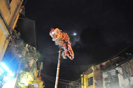 Sau đây là những hình ảnh PV VTC News ghi lại trong đêm Hội trăng rằm tại phố cổ Hội An:Từ rất sớm, hàng chục chú lân cùng tiếng trống giục dã quanh các con phố Hội An đã tạo nên đêm hội trăng rằm khó quên Mỗi đội lân mỗi vẻ.... Mỗi phong cách.... Mỗi cách thể hiện.... Ấn tượng bởi ông Thần tài và câu đối đỏ.... Hay pha múa lân trên sào tre.... Và mệt quá, "ôm" thôi.... Tất cả hội tụ về Hội thi múa lân toàn TP Hội An tại quảng trường Sông Hoài.... Phía bên trong các em nhỏ cùng nhau phá cỗ... và không thiếu các tiết mục hát.... Tận hưởng trung thu trên vai bố.... Với em, Trung thu đơn giản là hết nồi bánh bao này... với cụ già là mẹt tò he càng vơi đi càng tốt.... Chùa cầu rực rở cùng hoa đăng... Hoa đăng của em... Mỗi chiếc hoa đăng thả xuống sông Hoài đều kèm theo những lời cầu chúc..