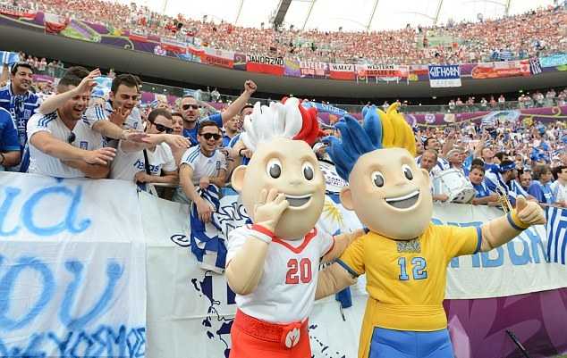 Hai nhân vật hoạt hình đại diện Ba Lan - Ukraine.