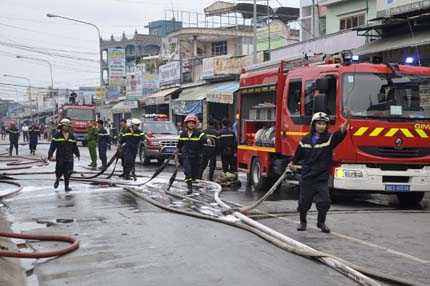 Hình ảnh PV VTC News ghi nhận tại hiện trường vụ cháy sáng sớm 09/12/2011 tại Q,.Bình Tân: