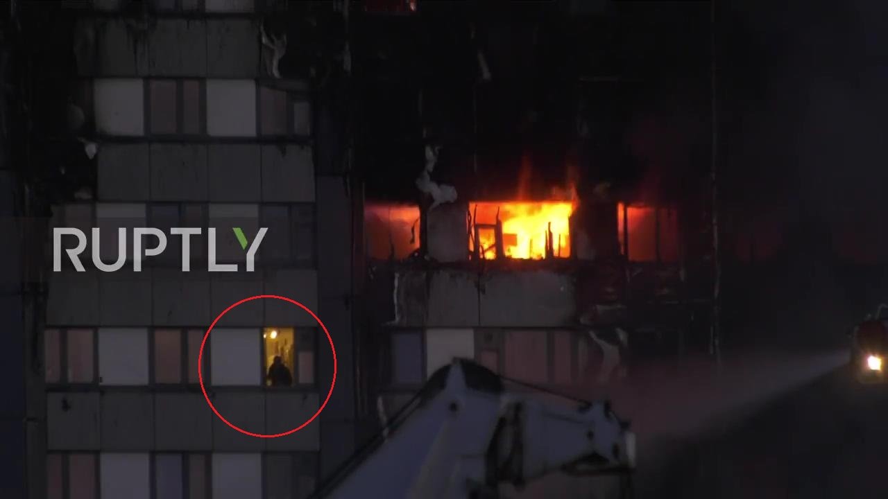 14/06/2017 12:26:00 +07:00Một nạn nhân bị mắc kẹt trong tòa chung cư 27 tầng Grenfell ở London (Anh) bình tĩnh mở cửa sổ quan sát tình hình trong khi các căn hộ bên cạnh đang chìm trong biển lửa.