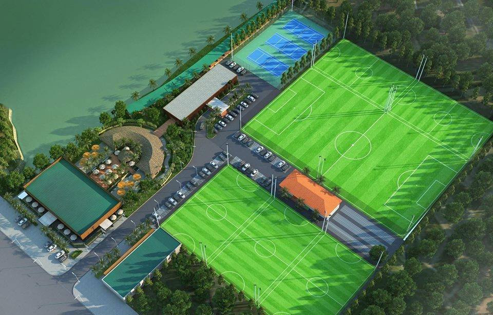 Một sân tập khu vực Mỹ Đình với các sân bóng tiêu chuẩn, sân tennis và khu vực dịch vụ cao cấp