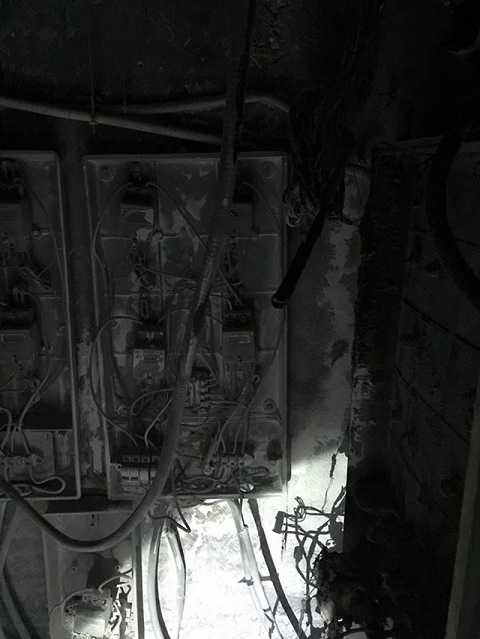 | Tủ điện tầng kỹ thuật tòa B CT5 khu đô thị Xa La (Hà Đông, Hà Nội) bị cháy rụi. |