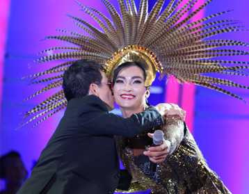 | Đức Huy hôn má Khương Ngọc |
