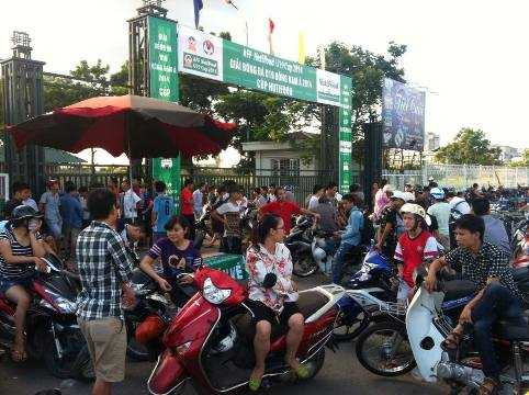 | Rất đông người dân đến sân 'thăm dò' giá vé (Ảnh: Minh Chiến) |