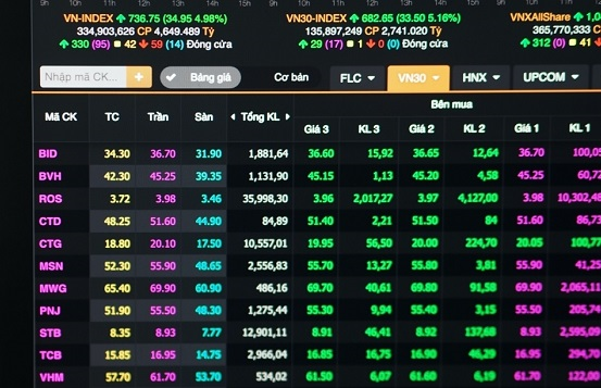 Lý do là thanh khoản của thị trường đã tăng mạnh khi vượt ngưỡng kháng cự 710-730 điểm, với sắc xanh lan tỏa nhiều nhóm cổ phiếu. Trước đó, những phiên vượt ngưỡng kháng cự không bền thường có thanh khoản thấp và lực tăng chỉ tập trung ở một số mã bluechip.