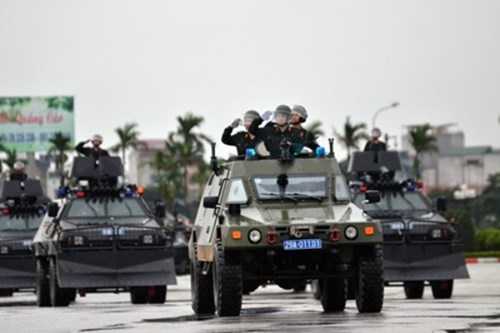 | Dàn xe bộ binh bánh lốp (BTR - 60PB) của Bộ Tư Lệnh Thủ đô, với hỏa lực mạnh, tính cơ động cao, có thể chở bộ đội tác chiến trên nhiều địa hình và làm nhiệm vụ chống bạo loạn. |