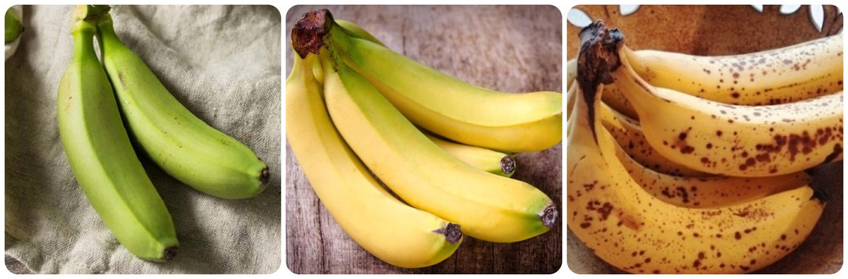 Dưới đây là những lợi ích của 3 giai đoạn chín của chuối từ chuối xanh, chuối chín vàng và chuối nâu.
