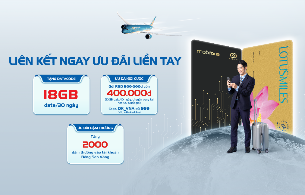 Đánh dấu 15 năm hợp tác giữa hai chương trình, MobiFone và Vietnam Airlines triển khai khuyến mại “Liên kết ngay, ưu đãi liền tay” để chào đón các hội viên liên kết mới, theo đó hội viên Kết Nối Dài Lâu và hội viên Bông Sen Vàng khi đăng ký trở thành hội viên liên kết sẽ nhận được bộ ưu đãi hấp dẫn và đặc biệt hơn bao giờ hết.