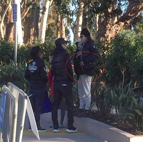 | Hình ảnh Tử Di với vòng hai lộ rõ trước ngày lâm bồn được báo chí đăng tải ngày 27/12. Mẹ cô (áo đỏ) đã bay từ Bắc Kinh đến Mỹ để tiện bề chăm sóc con gái sinh nở. |