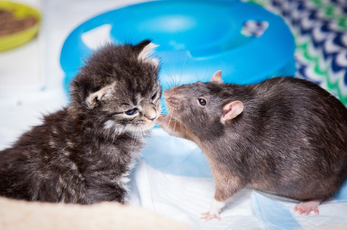 Một đoạn video được chia sẻ trên mạng cho thấy chú chuột Emile dùng chân và lưỡi “tắm táp” cũng như bầu bạn với bé mèo con mồ côi 8 tuần tuổi, đã khiến dân mạng tan chảy. Bạn chuột của Emile, Remy, cũng đóng vai trò là bảo mẫu cho những chú mèo con bị bỏ rơi.