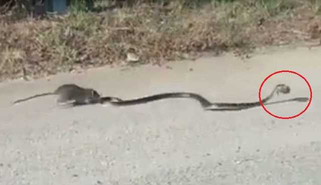 Chuột mẹ lao vào tấn công con rắn quyết liệt cho đến khi nó phải bỏ cuộc và chịu nhả chuột con ra.