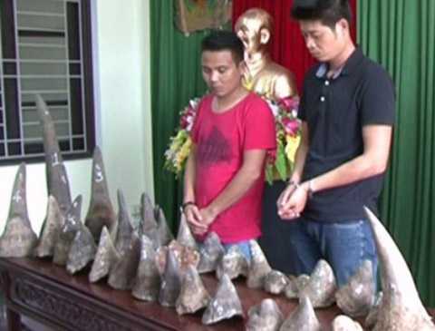 Ngày 10/5, thông tin từ Phòng cảnh sát kinh tế (PC 46) Công an Nghệ An cho biết cơ quan này vừa phá chuyên án 415S bắt giữ Lê Thanh Trung (32 tuổi, trú tại Ứng Hòa, Hà Nội) và Đoàn Duy Định (32 tuổi, trú tại Thọ Xuân, Thanh Hóa), thu giữ 37 kg sừng tê giác.