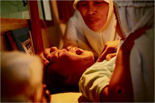 | Sự đau đớn trên gương mặt bé gái bị tiến hành cắt âm vật. |