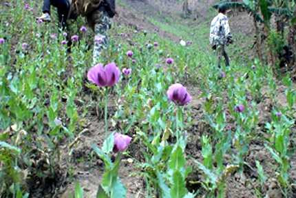 | Hàng năm, lực lượng liên ngành đều vào Háng Đồng triệt phá cây thuốc phiện. |