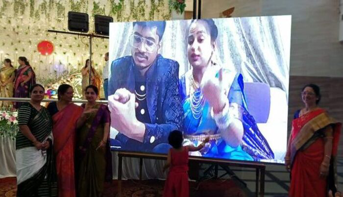Lúc này, người thân từ cả hai gia đình chuẩn bị hết mọi công đoạn cho buổi tiệc. Không còn cách nào khác, Ksheerasagar và Das phải tổ chức đám cưới của mình bằng hình thức trực tuyến.