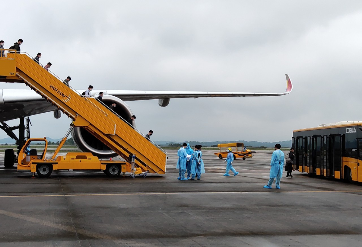 Cảng HKQT Vân Đồn áp dụng quy trình phục vụ hành khách khép kín phía ngoài nhà ga đối với chuyến bay này. Cụ thể, tàu bay khi hạ cánh đậu ở bãi đỗ xa. Sau đó, xe bus chở hành khách lần lượt vào làm thủ tục tại khu vực phía ngoài nhà ga, đảm bảo không ảnh hưởng tới hoạt động chung của sân bay, tránh lây nhiễm chéo cho nhân viên cũng như các hành khách khác.