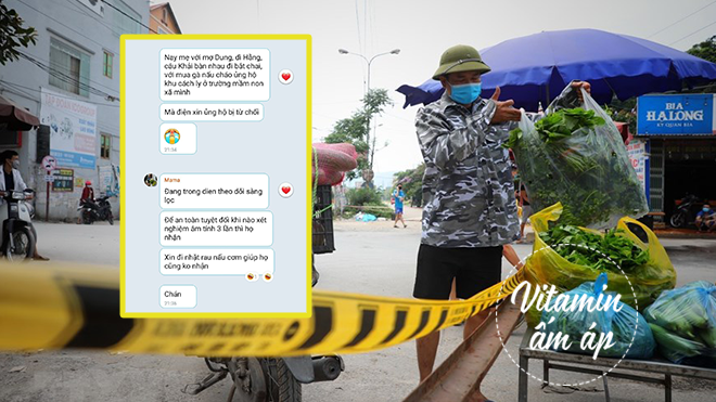 "Nhưng, vì mẹ mình thuộc diện 'ở ẩn tại gia' vì làm việc trong khu công nghiệp, nên người ta không đồng ý cho mẹ mình cùng các cậu, dì gửi đồ vào hỗ trợ. Dừng ở đó thì cũng buồn rớt nước mắt rồi, mà sau đó mẹ mình vẫn tiếp tục năn nỉ được giúp sức bằng cách xin nhặt rau, nấu cơm giúp họ. Và đương nhiên cũng bị từ chối lần nữa huhu. Buồn của mẹ mình.