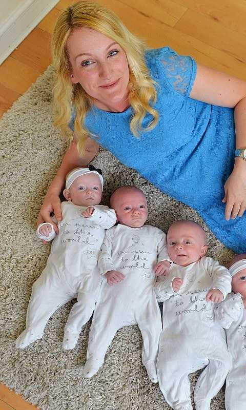 | Amelia, Sofia, Aston và Roman được thụ thai tự nhiên đã bốn tháng tuổi, mỗi bé lại được ra đời từ một trứng riêng biệt. |