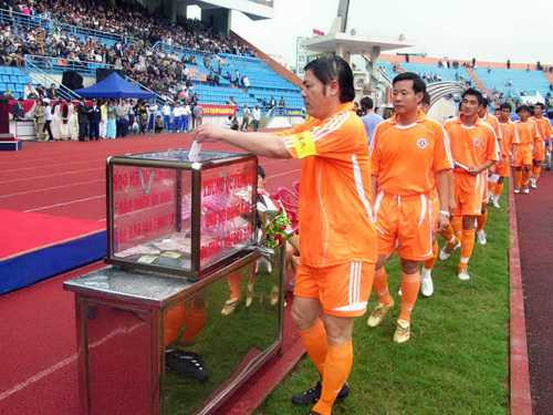 | Ông Nguyễn Bá Thanh trực tiếp tham gia thi đấu bóng đá và quyên góp ủng hộ các nạn nhân cơn siêu bão Xangsane năm 2006 ở TP Đà Nẵng và tỉnh Quảng Nam |