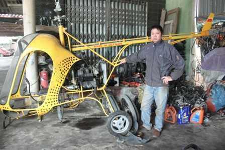 3 năm trời, anh Nguyễn Văn Thắng (Thượng Thanh, Long Biên, Hà Nội) cặm cụi chế tạo chiếc trực thăng để thỏa niềm đam mê của mình. Thông tin được giữ kín đến mức hàng xóm không biết đã đành, vợ con còn tưởng anh đang làm 1 chiếc... xe tang.