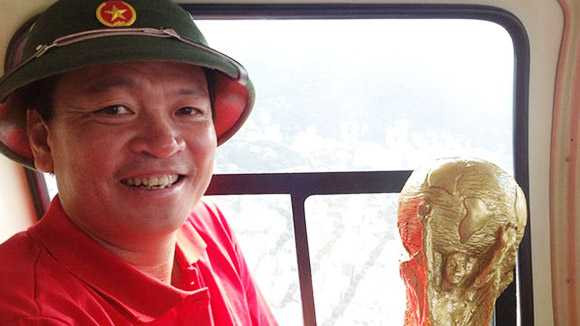 Tuy nhiên, do quy định của BTC cấm bay trên nóc sân vận động vì lý do an ninh nên Hoàn cũng chỉ có thể “lượn vài vòng”. Điều đặc biệt là trên chiếc trực thăng ấy, ngoài việc mời cả kíp truyền hình VTV lên “bay cho vui”, Hoàn còn mang theo phiên bản cup vàng. Những người Brazil quá đỗi ngạc nhiên thấy một “ông” mặc áo đỏ có sao vàng giữa ngực, cầm cup vàng lên máy bay. Cái “ngông” và cái “chơi” của Hoàn ít ai sánh kịp.