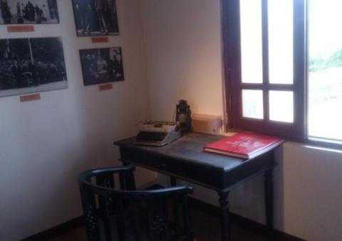 | Góc làm việc của Chủ tịch Hồ Chí Minh trong lần về thăm và làm việc ở đồn điền Chi Nê. Ảnh: Nguyễn Dũng |