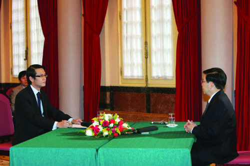 Nguyễn Tuấn Dương trong buổi PV nguyên Chủ tịch nước Nguyễn Minh Triết
