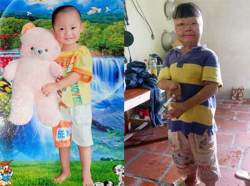 | Bé Linh trước và sau khi bị cha tưới xăng lên người và đốt |
